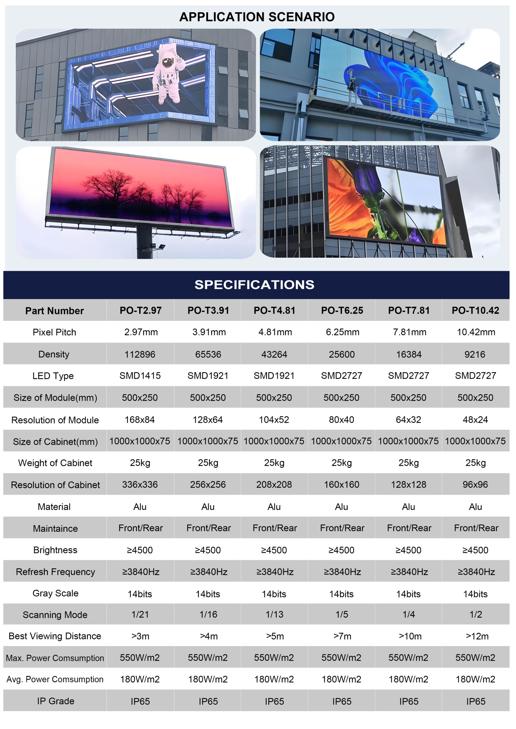 Pixel Pitch: P3.9, P4.8, P6.25, P7.8, P10.4